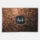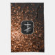 Bronze brown copper faux glitters sparkle Monogram Tea Towel