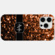 Bronze faux glitter sparkles Monogram iPhone 15 Case. Personalise Sparkly iPhone case with your initial and name. Beautiful girly glamourous shiny glitters sparkles. Photo of sparkles not actual glitter!