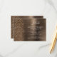 This elegant modern wedding details enclosure card features a bronze brushed metal background image sprinkled with chunky diamond faux glitter. Customize the white text, with the title "Details" in stylish handwriting script and the remaining text in sans serif font. The reverse side features a matching bronze brushed metal and faux glitter design.