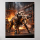 Powerful and unstoppable, this bronze bull design features cast bronze armour, reinforced steel joints, glowing eyes, lowered horns, and steam venting from its nostrils. Standing before a blazing furnace gate of molten metal, catwalks, chains, smoke, and flying sparks, the bull symbolises wealth, strength, and determination. Perfect for offices, finance spaces, studios, and masculine interiors. A commanding statement piece for fans of industrial décor, bullish energy, and premium mechanical animal art.