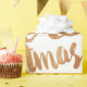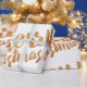 Bronze and white wrapping paper with Merry Christmas written in a calligraphy font. Note: the bronze is just a printed bronze colour.