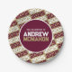 Burgundy and Bronze Gold Personalised Graduation Paper Plates - Repeating Background Collection