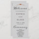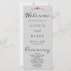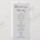 On the back of the program, a list honouring the wedding party is presented in a classic black and grey colour palette, using a simple block font for a clean and timeless appearance. To add a touch of elegance and romance, the words "Welcome," "Ceremony," and "Wedding Party" are delicately rendered in a pretty decorative script font.