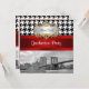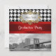 Customisable Invitations and accessories with a black and white East River skyline view New York City's iconic Brooklyn Bridge and Municipal Building with a boat passing by. It also features a black and white houndstooth pattern, a red ribbon and a white label in your choice of a silver or gold look frame. (Note: some coordinating accessories may not have the above mentioned photo or additional design elements.)