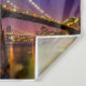 Iconic Brooklyn Bridge at night towering over East River in New York City.