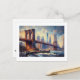 A dynamic cityscape depicts the famous Brooklyn Bridge amidst a vibrant urban setting. The energetic brushstrokes capture the movement of the water and the bustling life of the city behind the bridge.