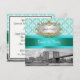 Customisable Invitations and accessories with a black and white East River skyline view of New York City's iconic Brooklyn Bridge and Municipal Building with a boat passing by. They also feature a Turquoise & white damask pattern, a teal ribbon and a white label in your choice of a silver or gold look frame. (Note: some coordinating accessories may not have the above mentioned photo or additional design elements.)