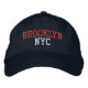 BROOKLYN NYC red and light blue coloured embroidery on navy cotton hat. Embroidery is customisable to other colour choices by selecting the "Edit Design" tool button. Also available is the option to select choice of hat colour on the main item page.
