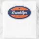 Oval signage design featuring the neighbourhoods of New York City. Official orange and blue colours of NYC. New York City borough of Brooklyn.