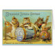 Vintage advertisement for Brooks Spool Cotton with a three piece band made of up three cats. Their instruments are thread spools