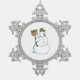 Broom Snowman white pewter snowflake ornament