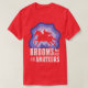 I give wanted to give this a 4 instead of a 5 because these Basic DARK T0shirts run unexpectedly SLIM or Narrow. Which is great if you do not have a potbelly, but I have a paunch. It isn't the shirt's fault that I've got a beer belly. The design and shirt itself is a quality cotton shirt. The color is more of a deep purple, but still a very pretty color. The Basic DARK T-shirts run a bit SLIMMER than the Basic Ts. The neck is a fraction narrower (or seems to be narrower) also. I'm a paunchy middle-aged woman and my neck is 12 inches (31cm) thick and the neckline fell about the same as in the photo of the man, and I had the desire to tug it a bit. So if you're a thick necked man or like loose shirts, be aware these are slimmer shirts. Once I get rid of my lockdown paunch it'll look great. The shirt washed well in cold water with no apparent bleeding. We don't have a dryer, so it hung dry. Did not shrink. Love the colors and the design. The design looks smaller on my shirt than it does on the model on-line. But still, it looks good on the shirt. The printing looks as it does on the model, just the size seems fractionally smaller. Washed garment in cold water, hung dry and design appeared unaffected.