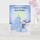 Celebrate your brother's fourth birthday with this sweet winter illustration featuring a cheerful snowman carefully shaping a big snowy “4.” The soft seasonal palette, playful snow textures, and whimsical details create a charming scene perfect for little ones who love winter magic.