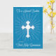 Brother First Communion Cross and Rays on Blue Card