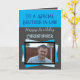 This card is great fun and good quality. I loved the humour inside and on the back. There is the opportunity to change the orientation of this card from landscape to portrait, which I did. It is relatively straightforward to amend the typeface to fit the new orientation. It was well packaged with no plastic. The printing on this card is excellent.