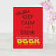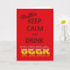 A funny card urging you to keep calm and drink beer on your birthday. A spoof on the internet meme.