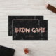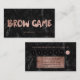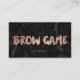 A modern, stylish brows eyes Brow game business card loyalty card with modern hand lettering style brush typography in faux rose gold foil on a trendy and elegant black marble background.
