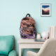 Brown and beige blurred crystal pattern printed backpack