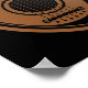 This unique yin yang design features the body of an electric and acoustic guitar. The strings of the guitars run up both sides of the pattern with the circular holes visible underneath. The bodies of the guitars take the shape of the yin yang tear drop. This beautiful symbol for balance displays the difference between electric and acoustic guitars.