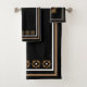 This bath towel set has a contemporary geometric design. Over laid on a black background, the design features black and brown squares and diamonds. You can customise the background colour. Wash cloth, hand towel and bath towel can be bought as a set or individually