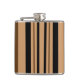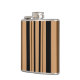 A simple abstract pattern of brown, black and tan vertical stripes creates an elegant, sophisticated hip flask.