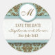 Brown and Blue damask monogram wedding sticker which can be used as an invitation seal.