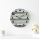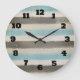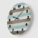 Brown and Blue Horizontal Stripes in Watercolor Large Clock