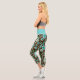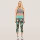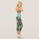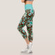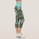 Fun capri leggings throwback pattern that features retro mod aqua blue and white flowers on brown background. Waistband panel is solid aqua blue. Be sure to check out the other clothing and accessories in this same pattern collection.