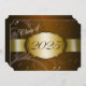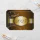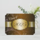 Brown and gold graduation party invitation with light and dark brown floral and a golden ribbon going across showing the year of graduation. The back of the card is for people to fill in the graduation party announcements.