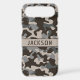 Customize this brown and gray camouflage iPhone 17 air case with your name in a trendy modern CAP font in brown on taupe. It's masculine and perfect for your favorite military, hunting, country or outdoorsman!
