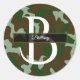 Brown and Green Camouflage Monogram Classic Round Sticker