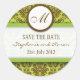 Brown and Green damask monogram wedding sticker which can be used as an invitation seal.