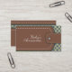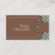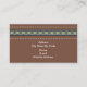 Brown and green leather look and pattern accessories business card template featuring two brown bands with seams and a button in leather style-not real leather just a PRINTED image and geometric pattern in grey and light green.
