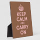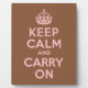 Modern version of the vintage "Keep Calm and Carry On" poster in brown and pink.