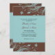 This classy invitation features chocolate brown and teal blue floral swirls with a simple lace edge for an area for invitation information. This beautiful and elegant wedding invitation is great for weddings with using brown and teal colours for a romantic feel. Look for matching RSVP in my shop!
