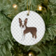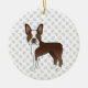 Brown And White Boston Terrier Cartoon Dog & Paws Ceramic Tree Decoration