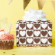 A wrapping paper built with a brown and white chequered pattern with hearts in large size. Customise the white background colour among several options.