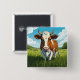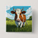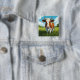 This colorful Badge/Pin shows a brown and white cow standing in a field of grass. A great gift for all cow and animal lovers.