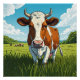 This colorful poster shows a brown and white cow standing in a field of grass. A great gift to decorate your wall, for all cow and animal lovers.