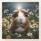 Brown And White Guinea Pig Moon And Daisies, Glass Coaster