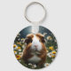 Brown And White Guinea Pig Moon And Daisies, Key Ring