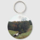 Brown and white horse at autumn pond key ring