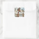 Pretty festive personalised Christmas stickers. A pretty brown and white horse standing behind an old rustic wood fence with a snowy background and vintage old red barn. The snow-filled fence is adorned with illuminated Christmas lights to give a warm festive feel to your country Christmas stickers sealers for your Christmas cards.