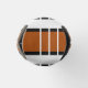 This bottle cooler has a geometric design of a plaid with brown and white lines on a black background.