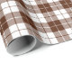 A wrapping paper designed with a brown and white plaid pattern. Customise the white background among other options.