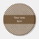 Brown and white polka dot design. White polka dots on a dark brown background.