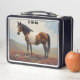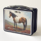 Designed for the pony-mad girl, this kid's lunch box features a brown and white Shetland pony on a hazy moor. Perfect for any little girl (or boy) who loves horses and ponies.