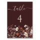 Brown Autumn Wildflower Meadow Wedding Table Number