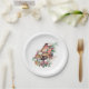 Piano recital reception paper plates, done in white, with watercolor artwork of a brown baby grand piano and flowers.