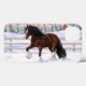 Bay Gypsy Vanner Irish Cob Tinker draught horse running In snow